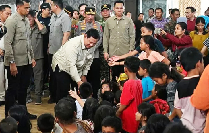 Prabowo juga menyempatkan diri berinteraksi langsung dengan para pengungsi. Ia menyapa warga satu per satu, mendengarkan keluhan, serta menanyakan kondisi kesehatan dan kebutuhan sehari-hari mereka.